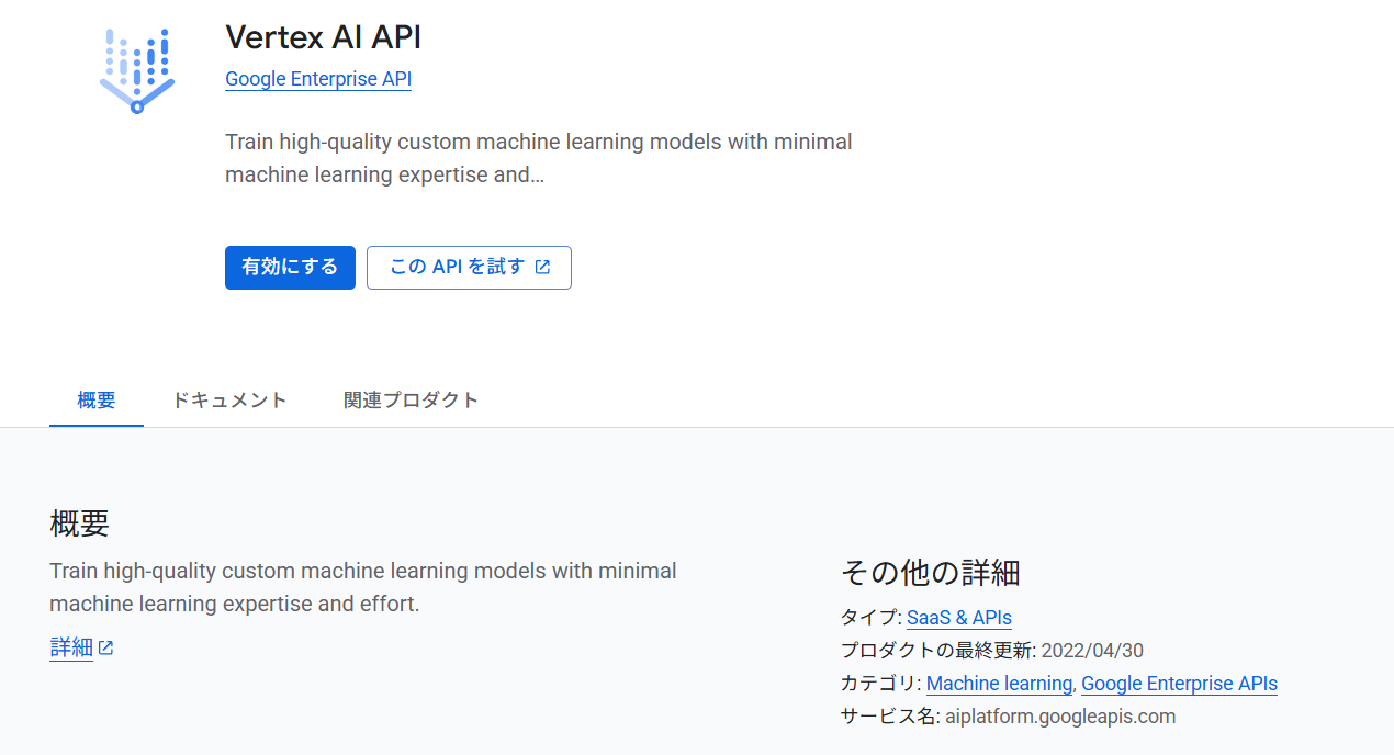 3.「Vertex AI API」を検索して有効化します。