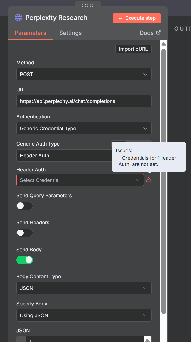 このノードを使用するには、Perplexity AIのAPIキーを設定する必要があります。