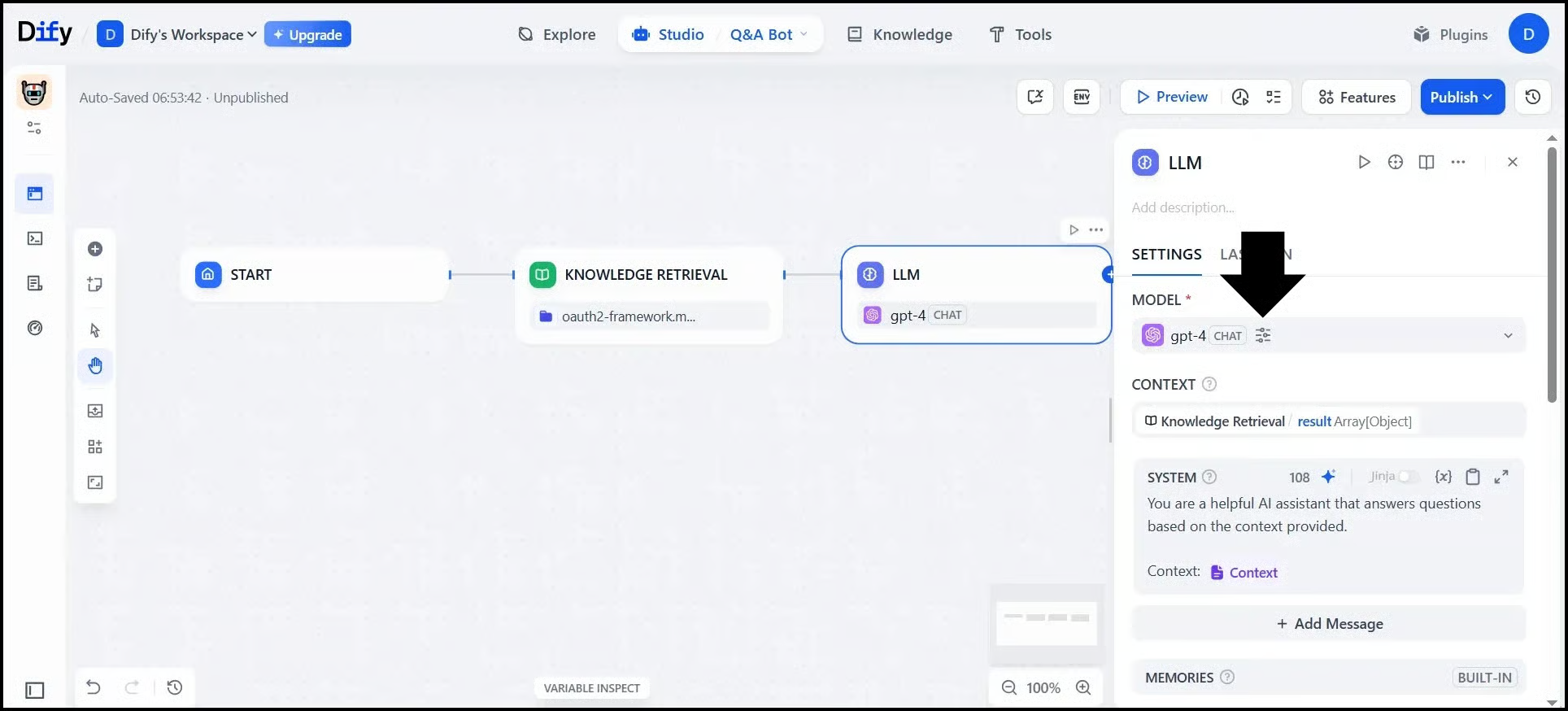 従来、高機能なAIチャットボットを自社サイトやアプリケーションに導入するには、複雑なプログラミング知識や高額な開発費用が必要でした。しかし、Difyを活用することで、専門的なコードを書くことなく、LLM(大規模言語モデル)を搭載したボットを作成できます。