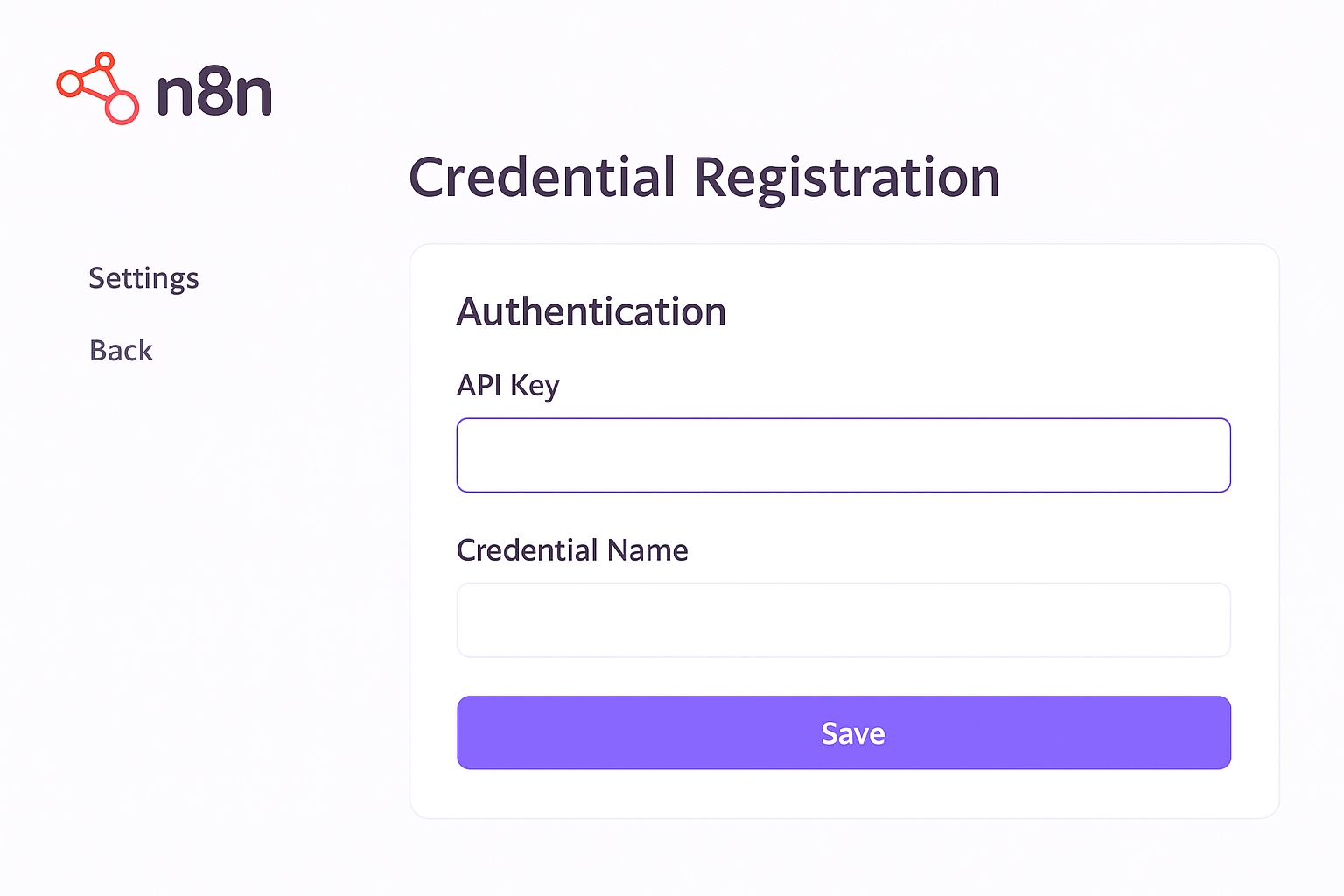 次に、取得したAPIキーをn8nに登録します。n8nの管理画面を開き、左側のメニューから「Credentials」を選択してください。「Add Credential」ボタンを押し、検索窓に「Google Gemini」と入力すると、該当する設定項目が表示されます。