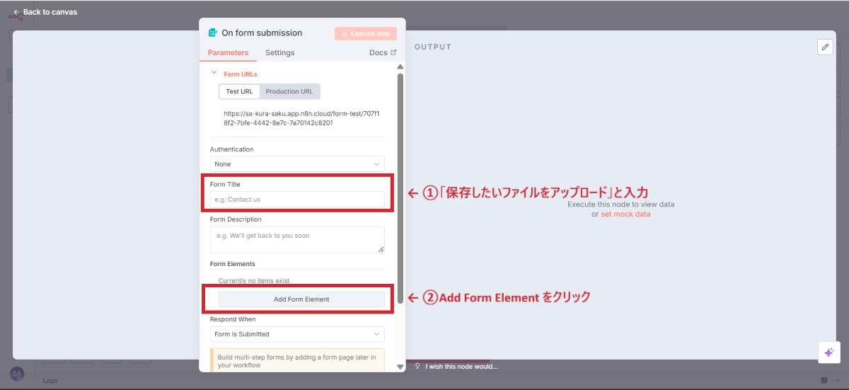 n8n Formノードを追加