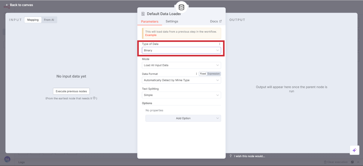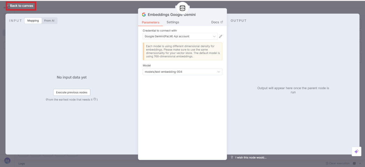 設定できたらBack to canvas でキャンバスに戻りましょう。