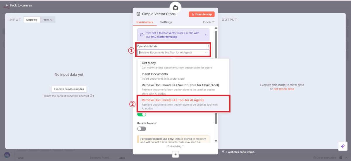 Operation Mode | Retrieve Documents (As Tool for AI Agent) | 検索モード |