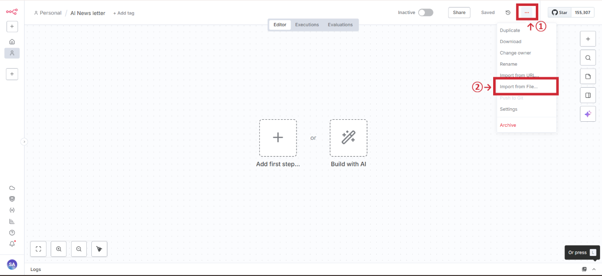 JSONファイルをインポートして、ワークフローの基本構造を作成します。