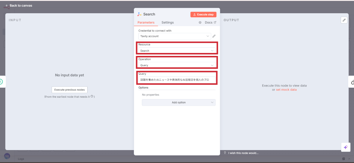 AI検索サービスTavilyを使って、最新のAIニュースを収集する設定を行います。