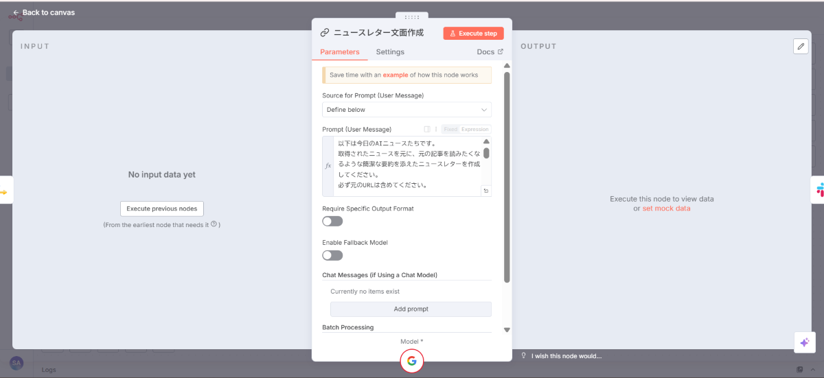 Basic LLM Chainノードの設定画面
