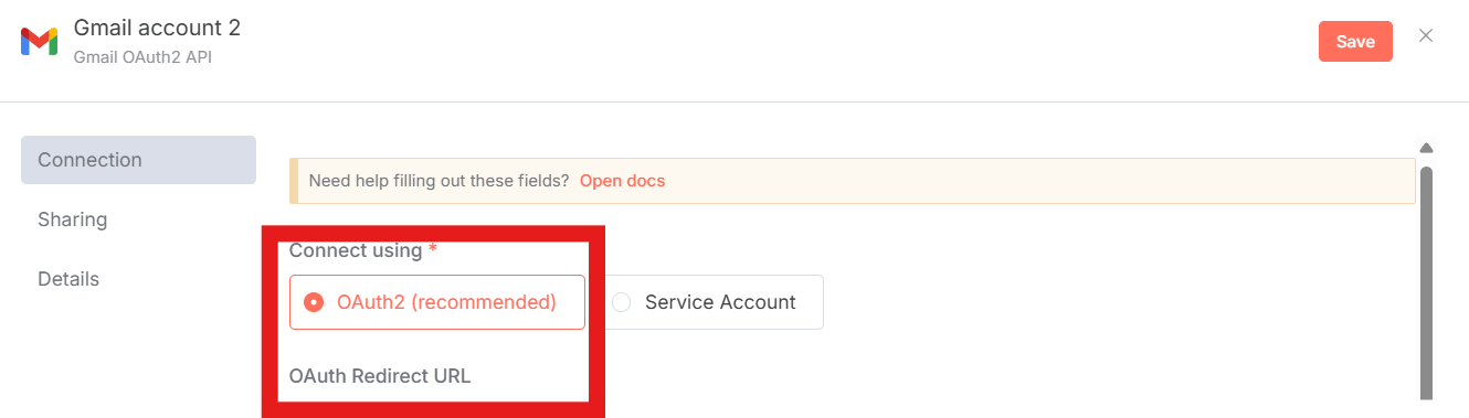 Gmail連携の主な設定はOAutH2:認証による接続で、これによりn8nから安全にメールを送受信する権限を付与できます。