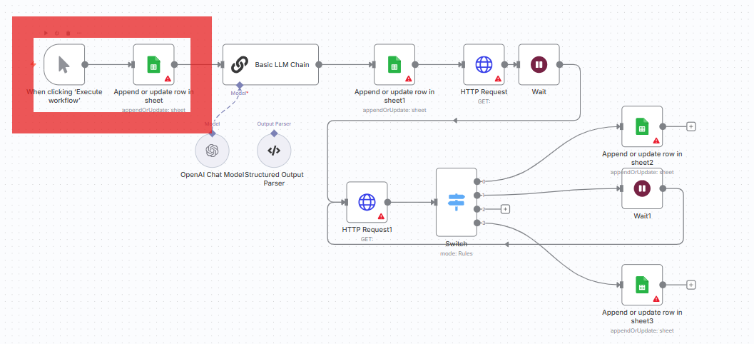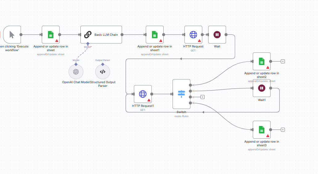 動画生成プロセスでは、生成が完了するまでに時間がかかることがあるでしょう。また、途中でエラーが発生する可能性も考慮する必要があります。これらの状況を自動で管理し、結果をGoogleスプレッドシートに記録するワークフローを構築しましょう。