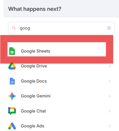 n8nでGooglesheetと検索すると、スプレッドシートが候補として表示されます。