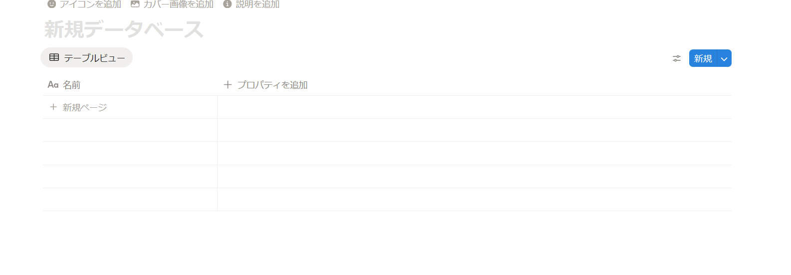 Notionで新しいページを作成し、以下のように「テーブル」形式のデータベースを選択してください。