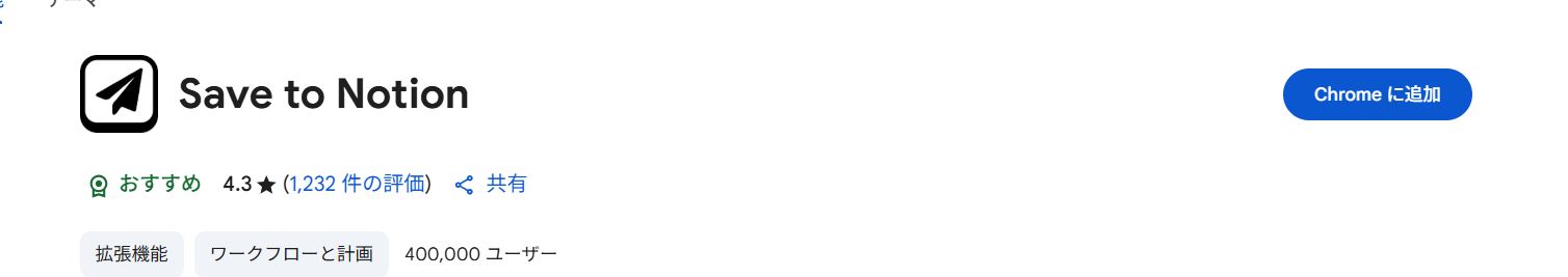 「Save to Notion」もChromeウェブストアから入手可能です。