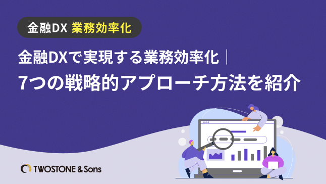『株式会社 TWOSTONE&Sons』は、金融業界に特化した業務効率化の支援を行っております。当社は、デジタルトランスフォーメーション(DX)を推進し、業務の自動化やシステムの最適化をサポートします。最新のテクノロジーの活用により、顧客管理からリスク管理、取引処理に至るまで、業務のあらゆる面で効率化を実現するサービスを提供できることが強みです。