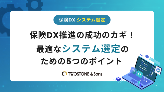 保険DXを成功に導くためのシステム選定方法をご紹介します。現場業務の課題整理から導入ステップ、比較検討のポイントまで丁寧に解説しています。最適なシステム選びでDXを加速させたい企業様は、ぜひ『株式会社 TWOSTONE&Sons』へご相談ください。