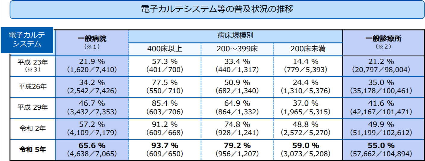 出典参照:電子カルテシステム等の普及状況の推移 |厚生労働省