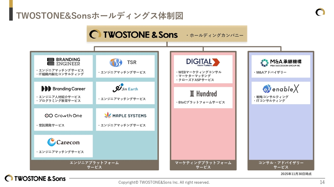 2026年1月14日に発表された、株式会社TWOSTONE&Sons 2026年8月期 第1四半期決算説明の内容を書き起こしでお伝えします。